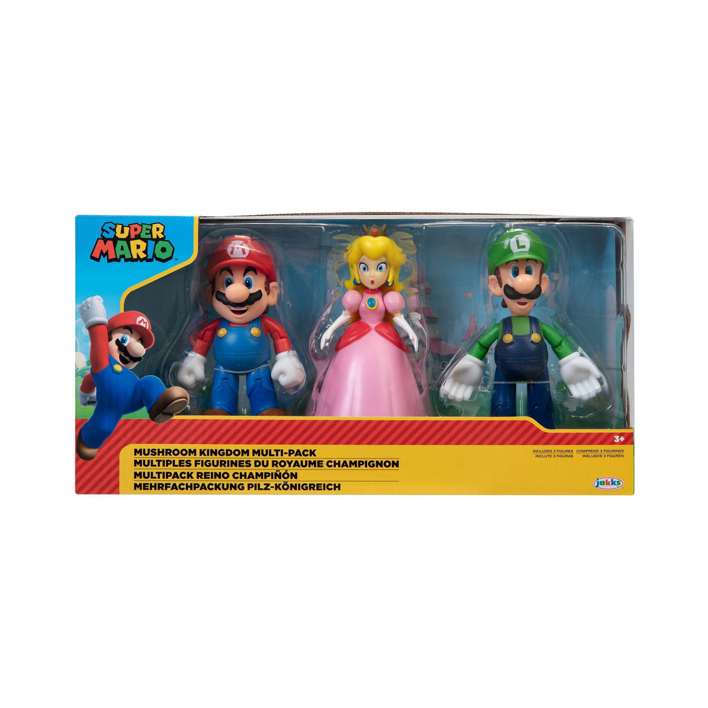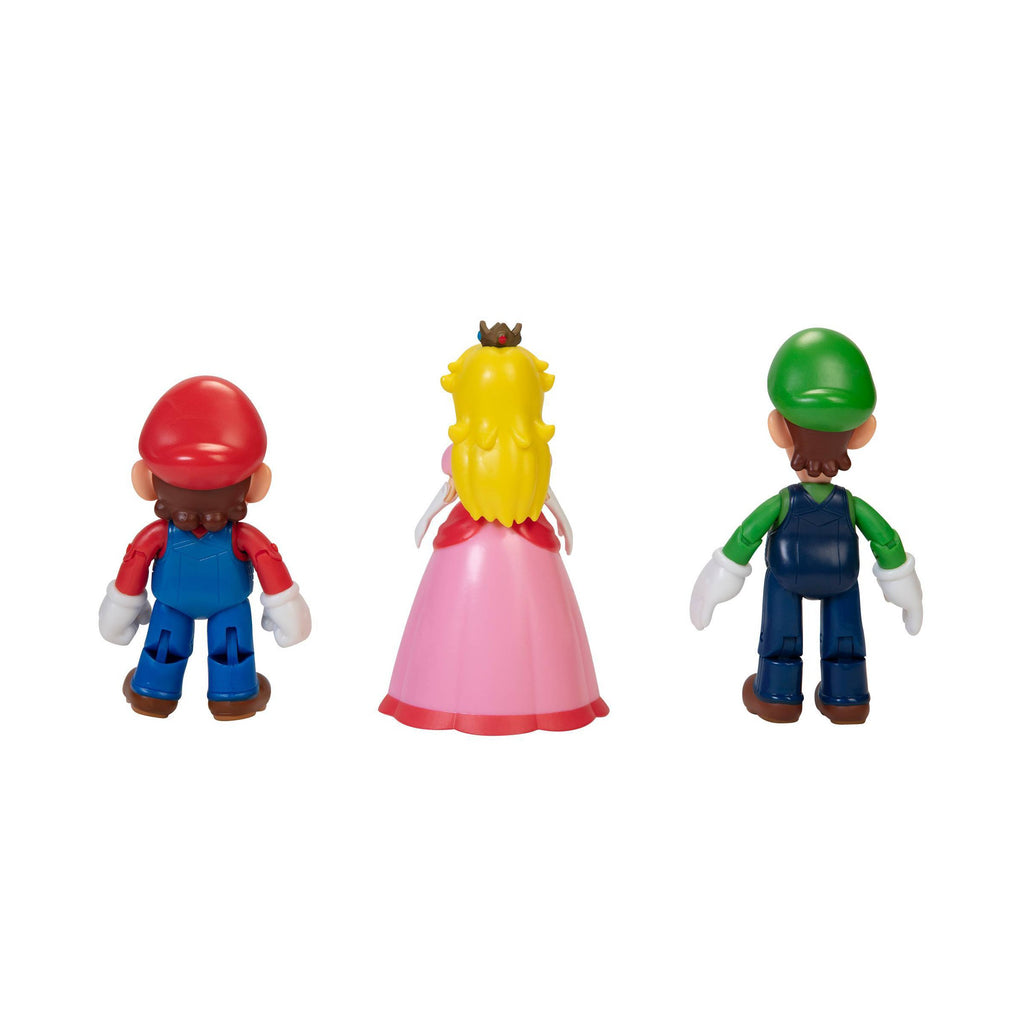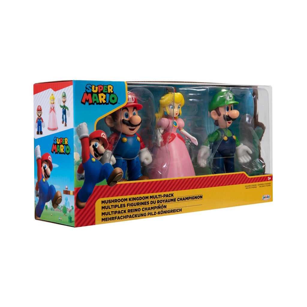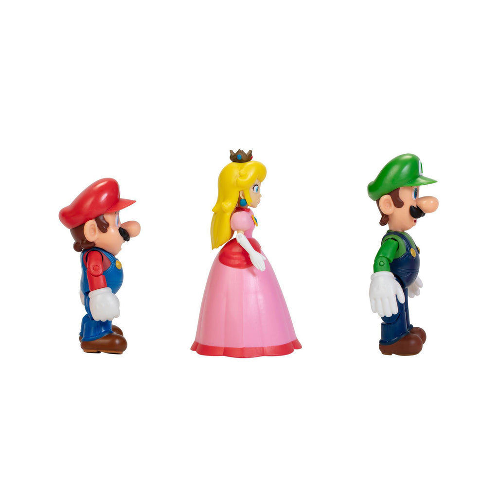 Nintendo launched its first console, the Nintendo Entertainment System™, in North America in 1985 and with it, introduced the popular Super Mario Bros.™ franchise. Mario™ has since gone on to star in many gaming adventures, becoming the pop-culture icon he is today. Along with his friends Luigi, Peach, Yoshi, and Toad, this classic video game hero has an enduring appeal for fans of all ages! The Mushroom Kingdom Diorama Set is sure to be hit with kids and Nintendo fans! These authentic and poseable figures are highly articulated – Mario has 11 points of articulation, Luigi has 11 points of articulation, and Princess Peach has 4 points of articulation. You can recreate the action from the games with these extraordinarily detailed figures and start your collection today.