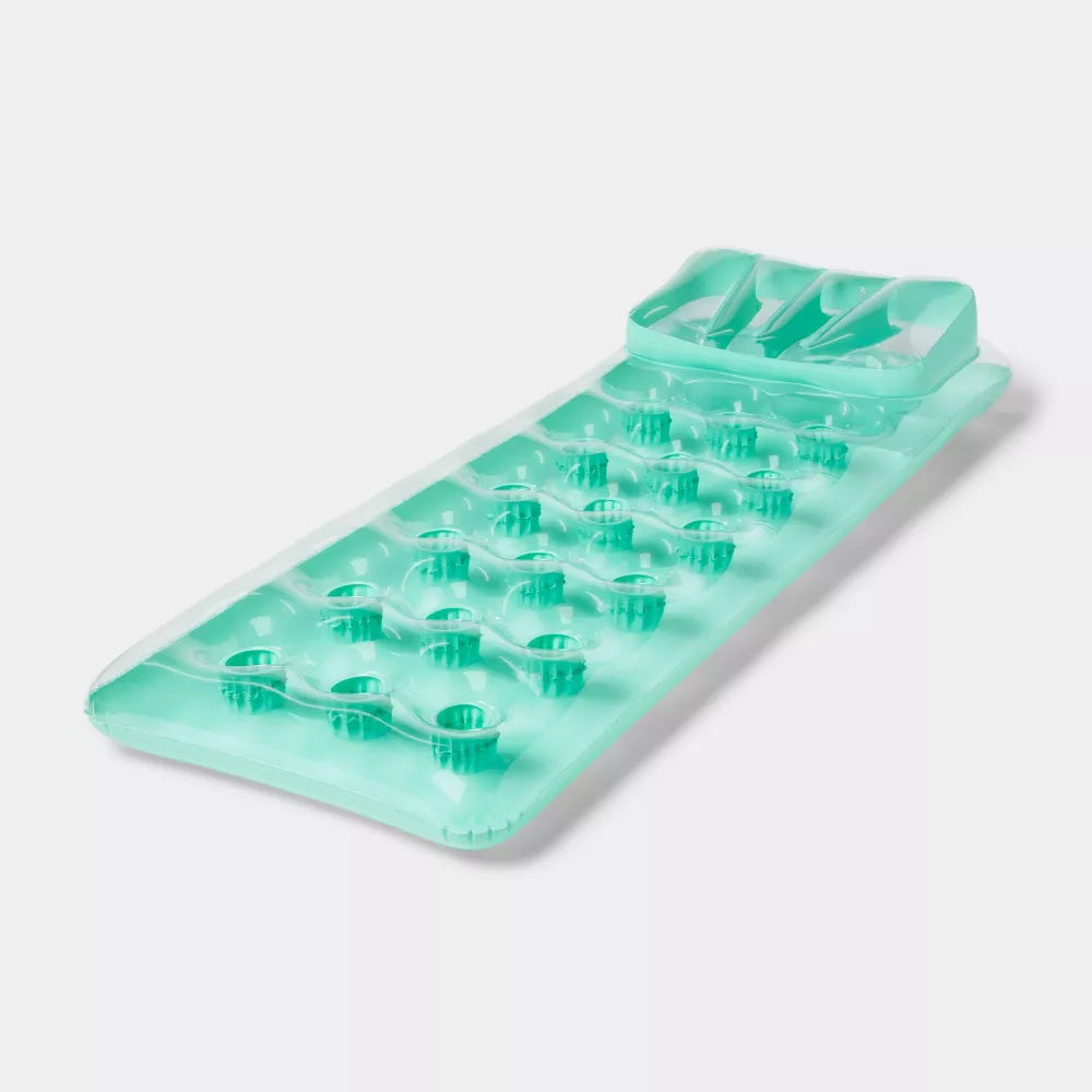 Relax on the water in style this summer with the comfortable Sun Squad™ Pocket Lounge. This luxurious lounge features 18 pockets, coil-beam construction and is made with durable and puncture-resistant materials. The air pillow top will also give you the relaxation you need to lay comfortably under the sun. With the 18 pockets, while it is there to give you the all-cushioned air support, it also serves as drink holders, ensuring you to have a refreshing drink within reach at all times. Easy to inflate, this lounge will have you splashing away all season long.