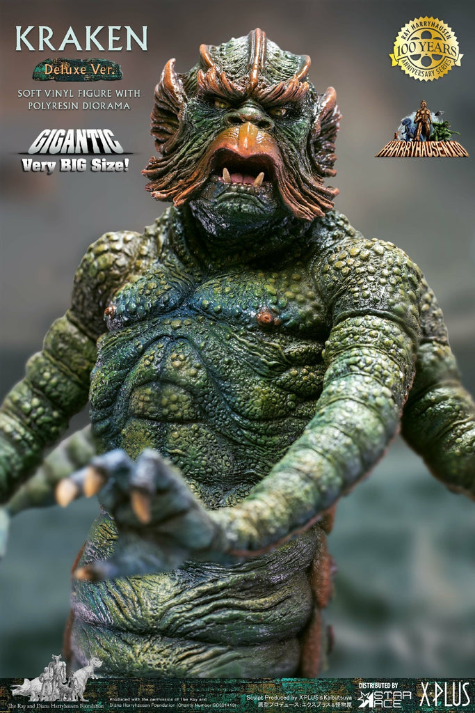 Traditionally sculpted by the artisans of the famed creature shop of Kaibutsuya, the statue is made from soft vinyl and is hand-painted to bring out the details of the sculpt. The deluxe version of the Kraken comes with a polyresin diorama base with sculpted ocean waves and a manacled princess waiting to be rescued. This extended version measures a full 25" in length with the base.