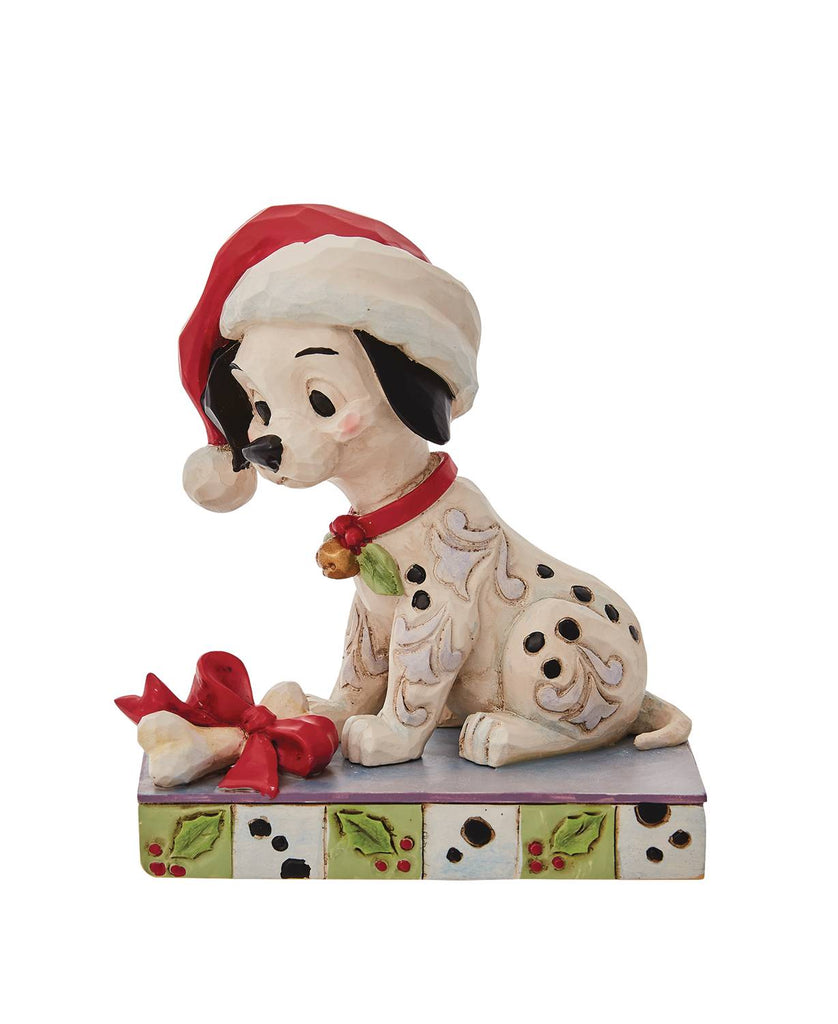 From Enesco. With one hundred and one brothers and sisters, Christmastime is a delight for Lucky. Enjoying the winter in London, Lucky savors a bone while he wears holly and a Santa hat decked out in Jim Shore's intricate detail. Beautifully hand-painted and crafted from high-quality stone resin, this figure stands about 4" tall.