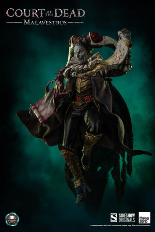 From Threezero. Based on an all-original design by Sideshow, threezero is proud to introduce the 1/6 scale Malavestros fully-articulated figure from Court of the Dead. Malavestros stands approximately 10" tall with 22 points of articulation. The Malavestros figure also comes with a high realistic head sculpt, an outfit, collar, pants, breastplate, cloak, belt with ornaments, boots and two pairs of interchangeable hands (relaxed hand, posing hand, and holding hand). Accessories include a Book, Scroll, Open scroll exclusive pieces, and a figure stand. Final product may vary from prototype images.
