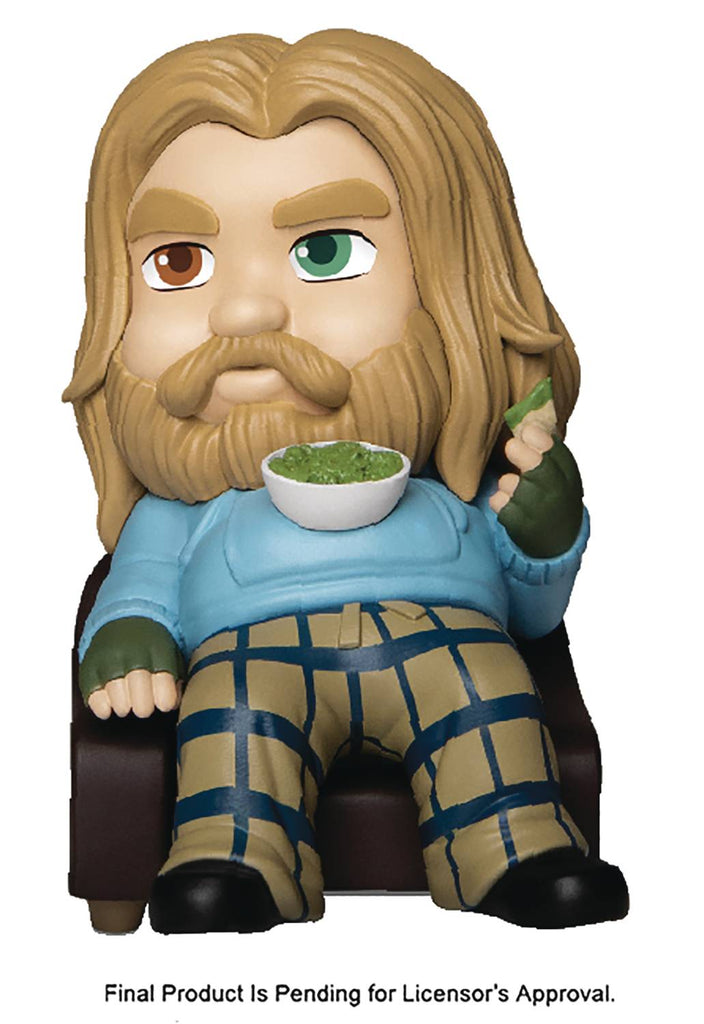 From Beast Kingdom. The classic 3-inch Mini Egg Attack (MEA) series of figurines by Beast Kingdom is back with a big, brotherly bang. The popular Bro Thor character from Avengers: Endgame is ready in mini form to lounge next to a couch near you. Which version will be ready to take on the mightiest, angriest in the universe? There's a full set of four designs to collect, all recreating the appearance of the now infamous character in full! It is up to you to choose or better yet take them all!