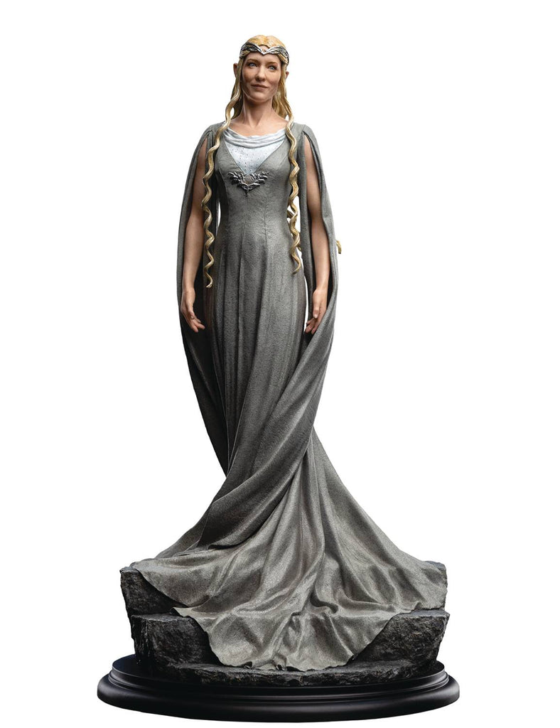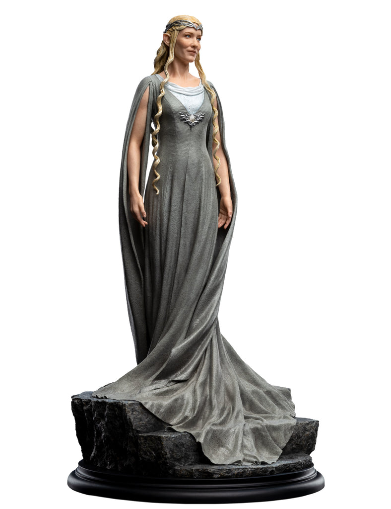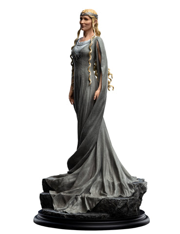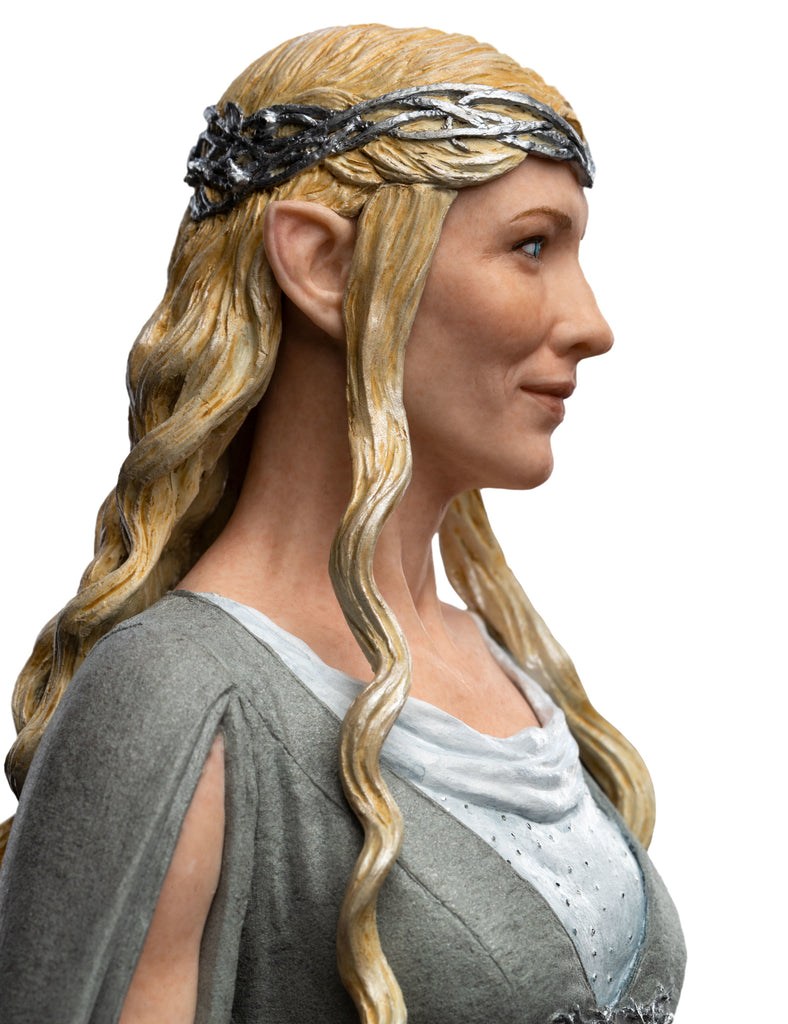 Weta Workshop is thrilled to return to Middle-earth once again! Among the oldest beings in Middle-earth, the Lady Galadriel was wise beyond the measure of mortal men. Many wars she has seen, and many friends lost. This statue captures both her statuesque strength, and the lively beginnings of a smile as she turns to meet Gandalf's eye! This stunning 1/6 scale high-quality polystone figure of Lady Galadriel features her in her signature corkscrew gown pose is sculpted by Jane Wenley and stands about 15.3" tall.