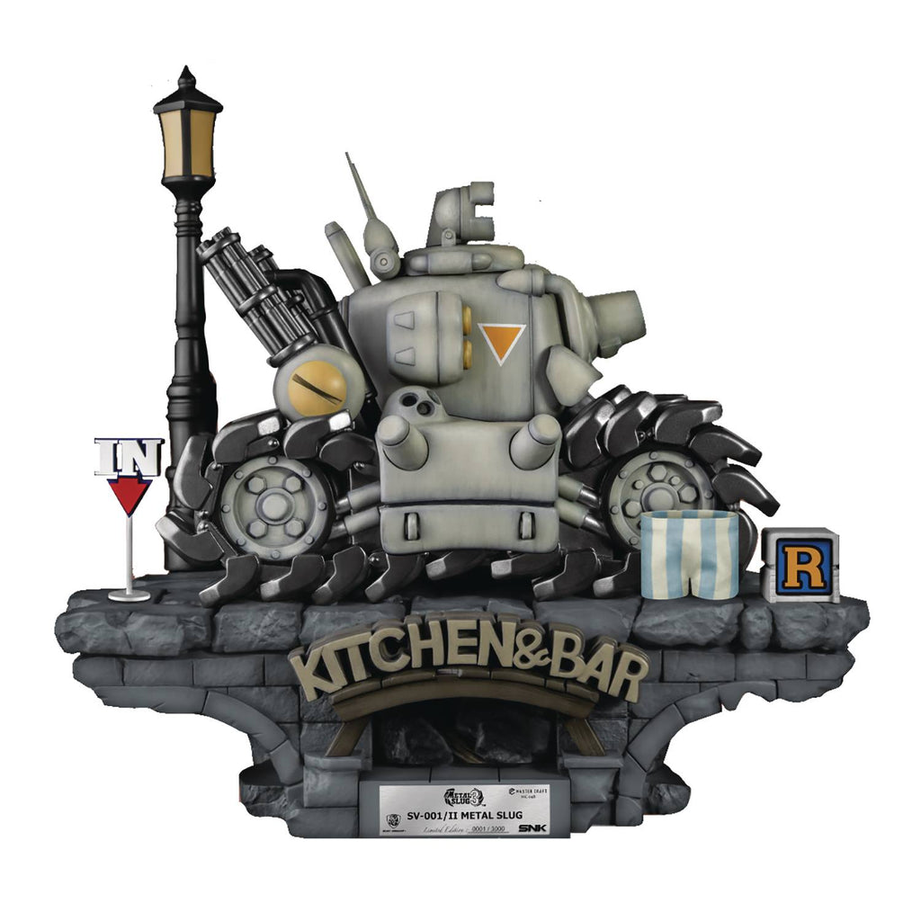 From Beast Kingdom. In 1996, one of the most celebrated arcade video gaming franchises was born! SNK's Metal Slug introduced gamers to a war epic unlike any other. Beast Kingdom gives fans the chance to own a piece of gaming history with the launch of SV-001 Master Craft Tank. Limited to only 3,000 pieces worldwide with a number plaque on the base, the hand painted and crafted statue based on the design from Metal Slug 3 recreates the battle-worn tank with an immense focus on the fine details. A matching painted base brings to life a broken bridge with a set of movable extras including a street sign, game logo, 'R rocket launcher' as well as an extra pair of underpants from the saved POW, giving fans ample ways to set up the collectable piece.