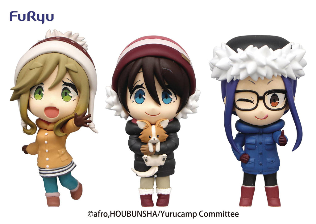 From Furyu. From the anime series Laid-Back Camp comes a set of 3 figures for you to collect! Each one stands almost 3 inches tall and features the girls in an adorable chibi style.
