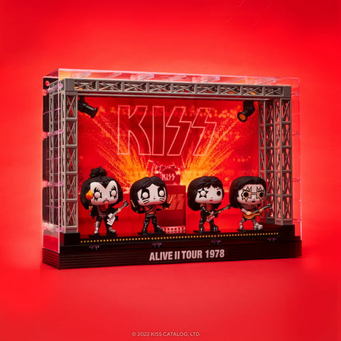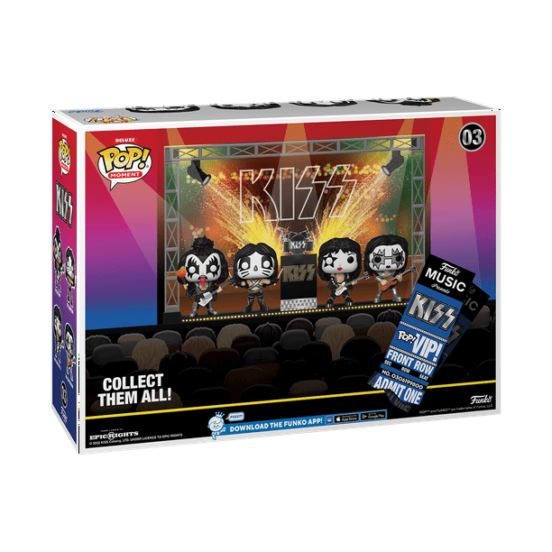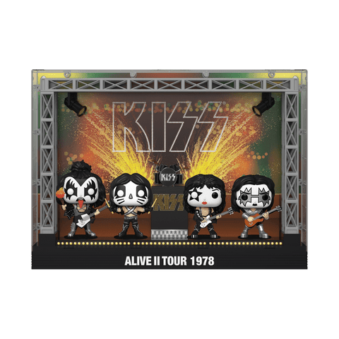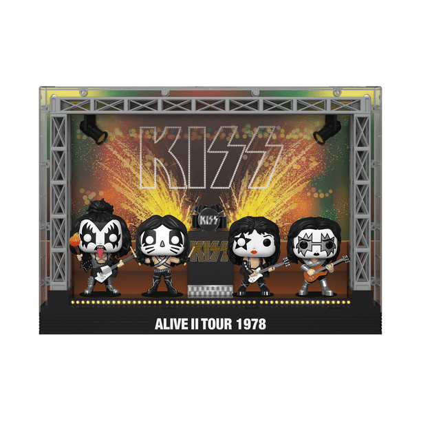 Get front-row seats to an electrifying Pop! Moment of Kiss’ Alive II Tour in 1978. This Walmart-exclusive features Pop! The Demon, Pop! The Catman, Pop! The Starchild, and Pop! The Spaceman on stage, with spotlights, scaffolding, a drum set, and a fireworks spectacle backdrop in an array of colors behind them. The band’s name, Kiss, rises above, in lights. This unique collectible comes in a prepackaged case that can be hung on the wall or displayed in your music collection. The Pops! inside are secured to the case to keep your display looking pristine. This Pop! Moment Deluxe commemorates Kiss’ record-breaking sold-out nights for the Alive II Tour, which went worldwide. Get your tickets and all-access passes to re-create your favorite Pop! Music moments. Vinyl figures are approximately 4-inches tall. Approximate dimensions of the case: 13” H x 18” W x 4 5/8” D Find more Funko products at Walmart.