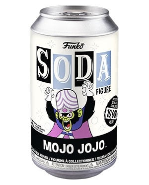 Included inside this soda can is a 4 1/4" tall vinyl figure of Mojo Jojo from The Powerpuff Girls and a collectible disc. Look out for the chase version!