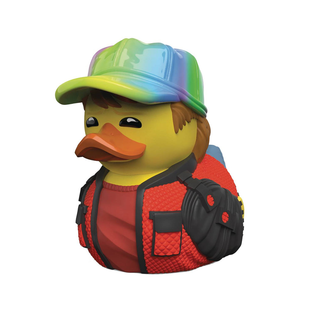 From Tubbz. Marty, dressed in his trademark iridescent hat and riding his amazing hoverboard, is prepped and ready to bring the ruckus to the future! This officially licensed collectible is part of the TUBBZ range, a highly collectible series of your favorite gaming, movie, TV show, and pop culture characters in duck form! Featuring incredibly detailed features, this amazing collectible comes complete in a displayable tub box.