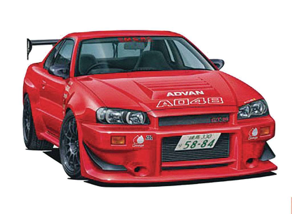 From Aoshima Bunka Kyozai Co. Aoshima brings fans a model kit of the 2002 BNR34 Nissan Skyline GT-R in MCR aero specifications! Includes: Front bumper spoiler, Front canard, Aero hood, GT wing, Muffler, 19inch Enkei NT03+M wheels, and Window frame seal is included.