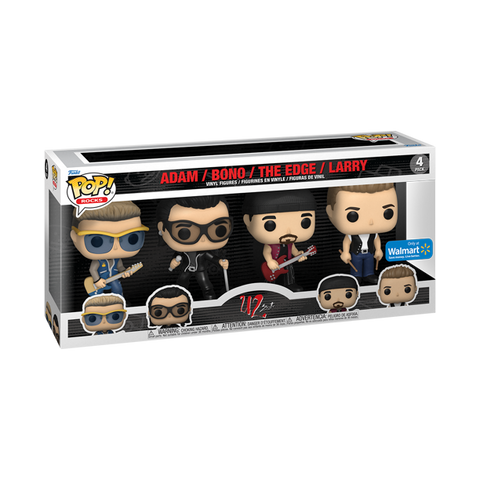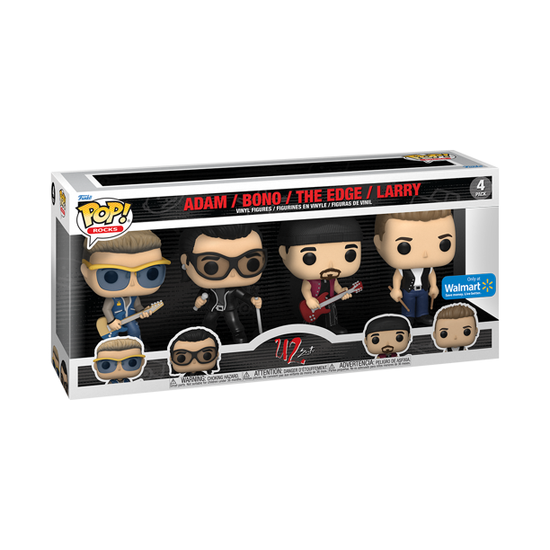 Pulse, rock, and sway to the driving beats and powerful lyrics of the U2 band with Pop! Bono, Pop! The Edge, Pop! Larry, and Pop! Adam. This Walmart-exclusive 4-Pack makes it easy to grab front-row seats and create your own U2 concert. Vinyl figures are approximately 4-inches tall.