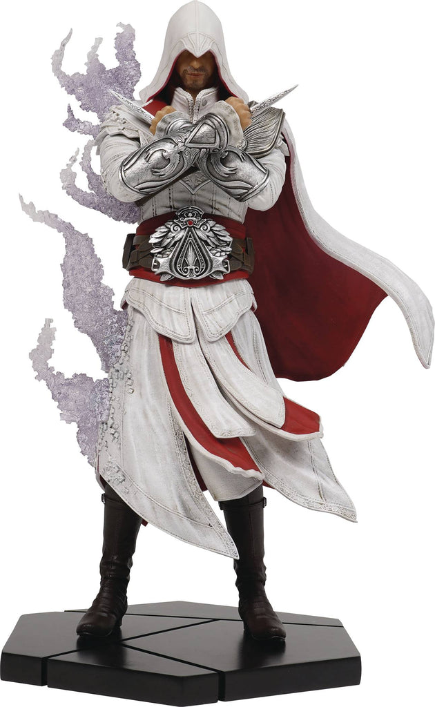 From PureArts. Discover the new Animus Collection with the Master Assassin Ezio figurine inspired by Assassin's Creed Brotherhood. The beautiful Animus effect pays tribute to the present/past duality central to the game. Master Assassin Ezio is depicted in an iconic pose with his dual hidden blade and stands about 9.84" tall.  Get your hands on this new Assassin's Creed figure!