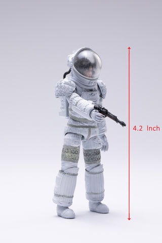 Hiya Toys presents the white spacesuit worn by Ripley during the closing scenes of Ridley Scott's 1979 Alien movie in 1/18 scale! This 1/18 scale figure stands approximately 4" tall and comes complete with a blaster accessory.
