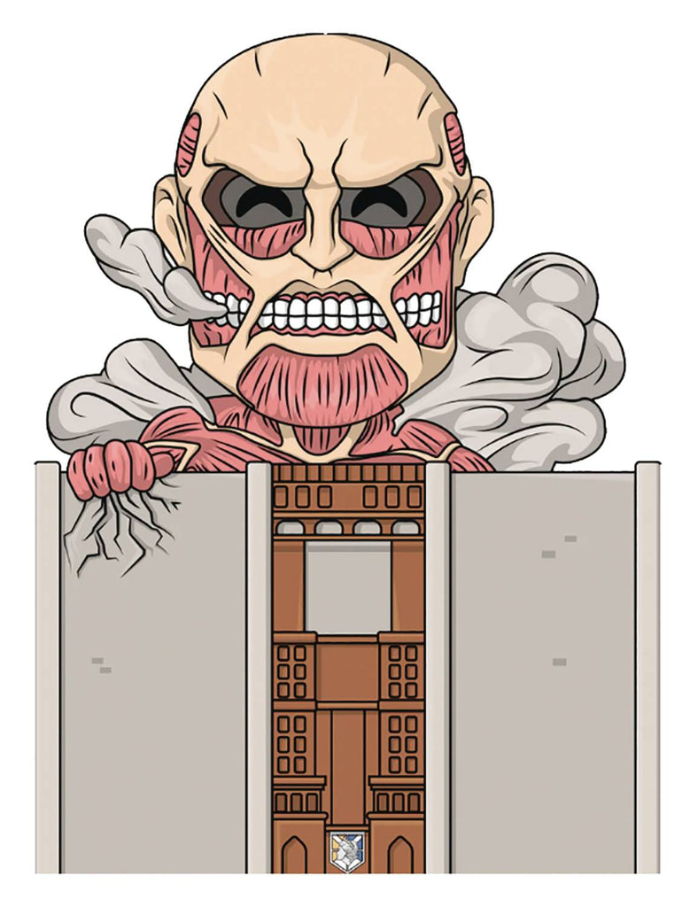 From Youtoonz. When facing a Titan, you never know enough. On that day, mankind received a grim reminder. We lived in fear of the Titans and were disgraced to live in these cages we called walls. 5 years ago, we broke through the walls and launched an attack on humanity. Standing at 5" tall, Colossal is the most notable Titan. The muscles are carefully sculpted and red, with bones visible. This collectible is a conversation started in any living room. The double-walled window box includes drawings of fire, chaos and the Attack on Titan logo. This collectible ships in a matte, embossed, protective outer sleeve.