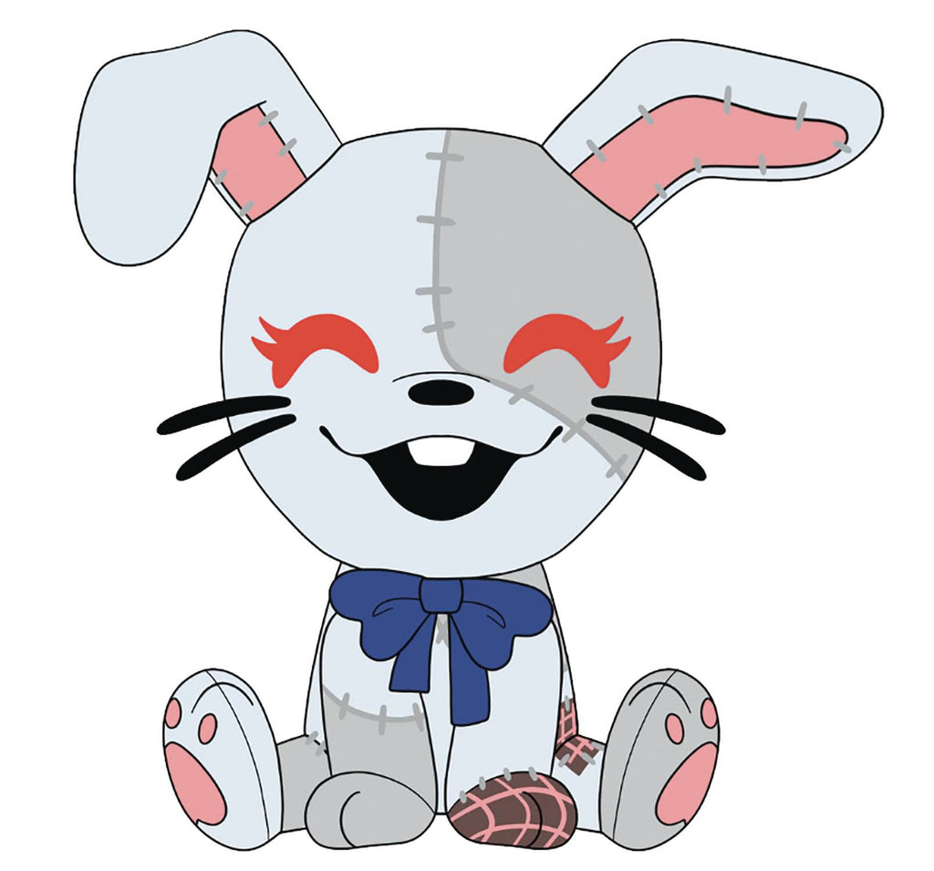 From Youtooz. Sitting at 9 inches, Vanny has arrived in plush form. With her big blue bow as an accessory and her bright red eyes, she wears a very friendly smile on her face. Her left hand and leg have some different patches sewn into her. Her ears have metal wires in them so you can pose them however you want! Made from 100% super soft PP cotton, ready to cuddle.